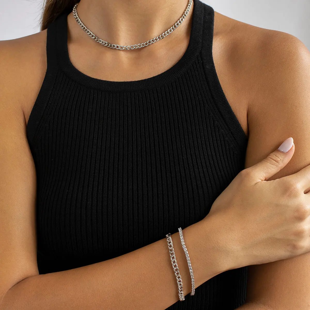 Half Pave Mini Curb Chain Bracelet JW